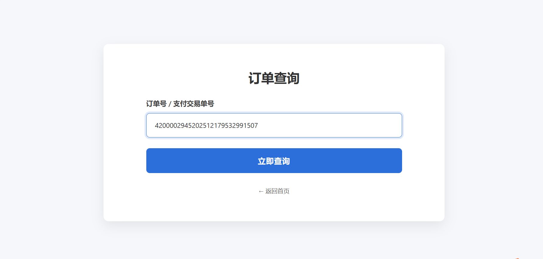 1. 输入订单号/支付交易单号后,点击订单查询,即可看到商品密码等信息。