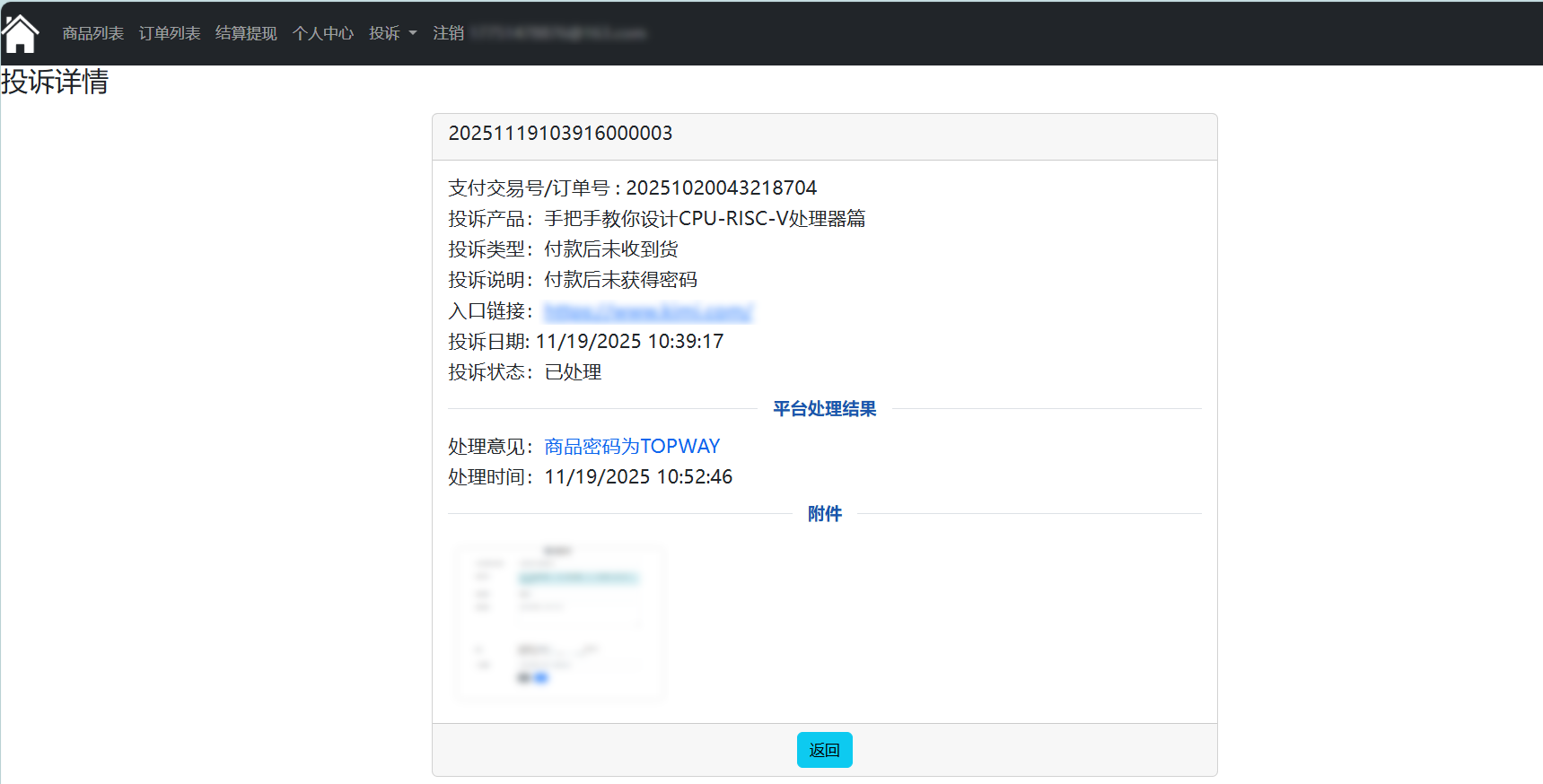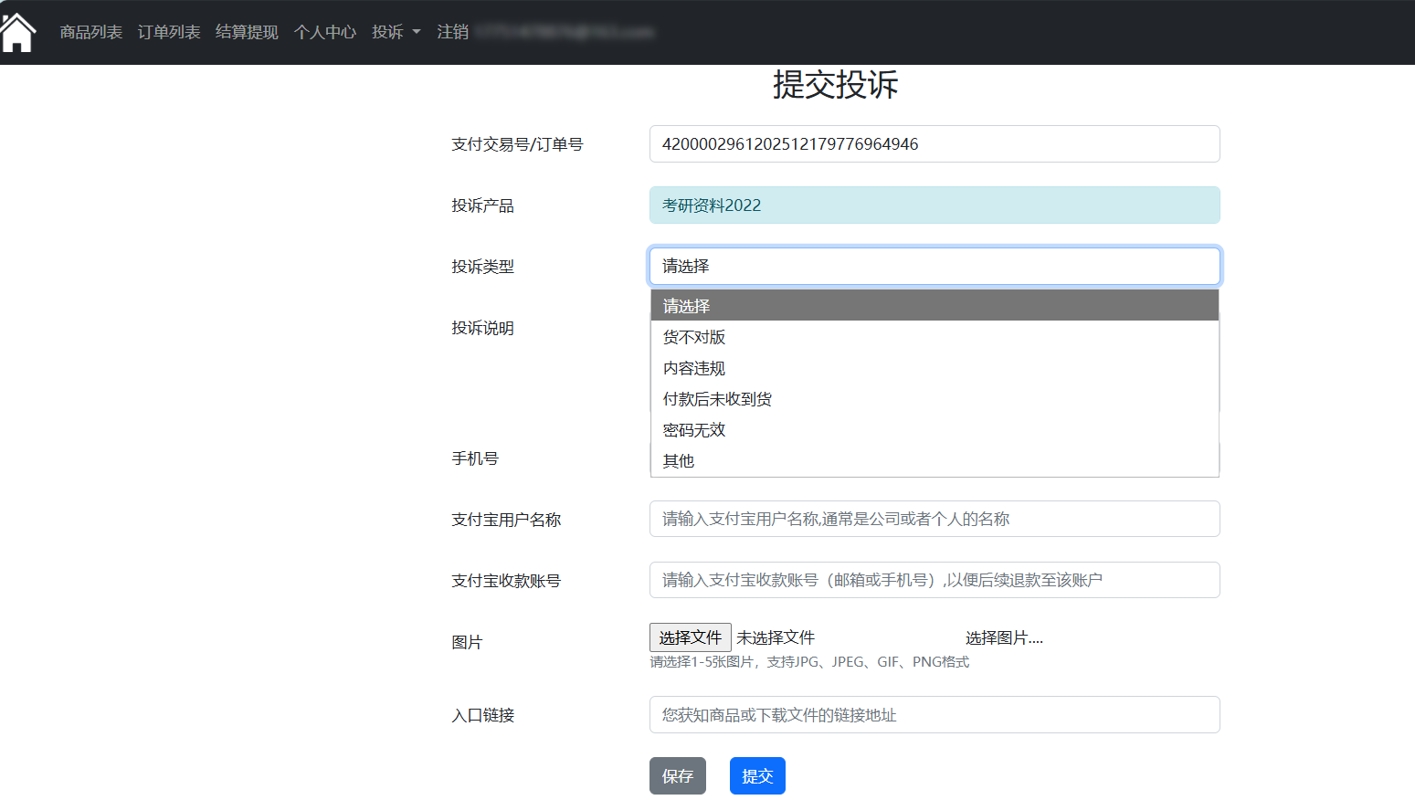 注意:购买商品后的七天内可以投诉,已过投诉期将无法填写投诉;