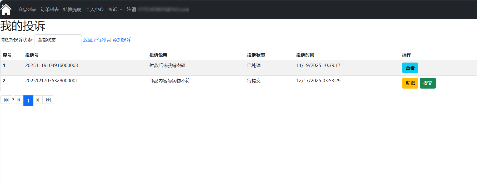 1. 在我的投诉里面查看可以投诉记录,若是创建投诉时,只点击"保存"按钮,可在投诉--我的投诉页面继续进行该投诉的编辑和提交, 投诉状态为"已处理"时,可点击"查看"按钮查看处理结果