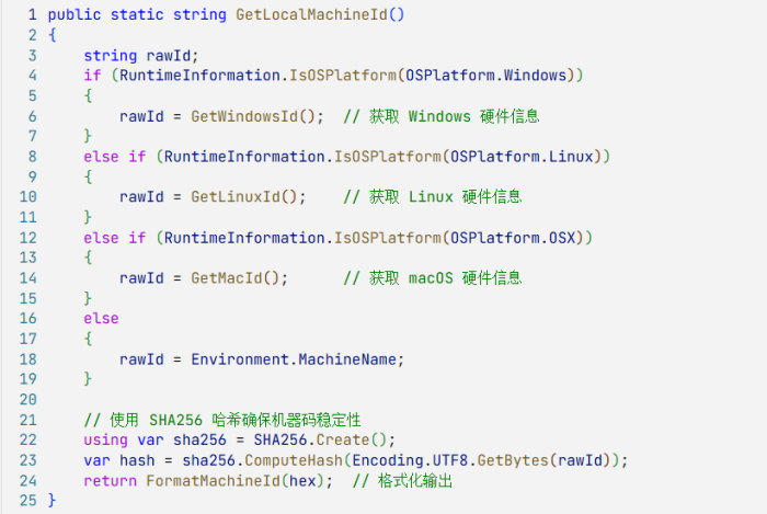 - 使用哈希算法确保机器码的稳定性