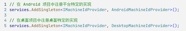 在 RegistrationEasy.Common/Services/MachineIdProvider.cs 中实现了跨平台的机器码生成逻辑: