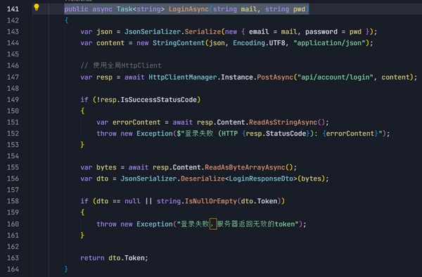 - 如果登录成功,程序会保存Token并记住用户的邮箱,将Token放到后续的添加Authorization头中;